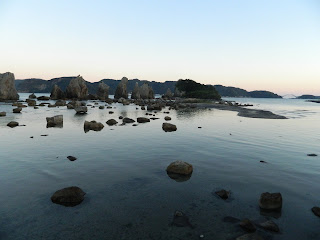 This amazing formation of rocks was formed from magma coming up and cooling. The rocks in the foreground are parts of the magma that have been carried away from tsunami's. The rocks were exposed when the surrounding mudstone wore away from erosion.